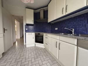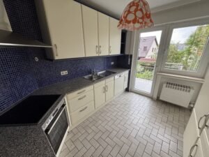 . Cuisine d'une surface d'environ 9,70m2 avec accès à la terrasse et au jardin