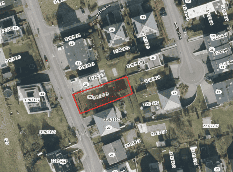 Le Bureau Immobilier Loewen-Kill présente à la vente ce terrain constructible situé en zone d'habitation HAB-1 à Fentange (sans contrat de construction), permettant la construction d'une maison / maison bi-familiale libre de trois côtés.